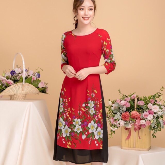Ao Dai Cach Tan Nữ đẹp 2020 Mau đỏ Freeship Ao Dai Cach Tan Nữ