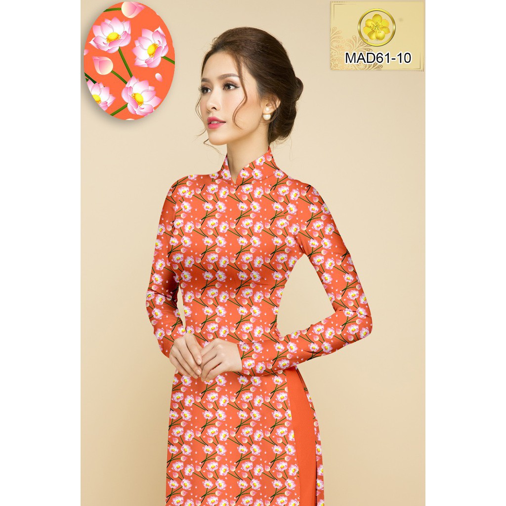 Ao Dai Cao Cấp May Sẵn Mau Cam Hoa Nhi In 3d Cổ Thuyển Tron Kem Quần Vải Co Giản Mạnh Shopee Việt Nam