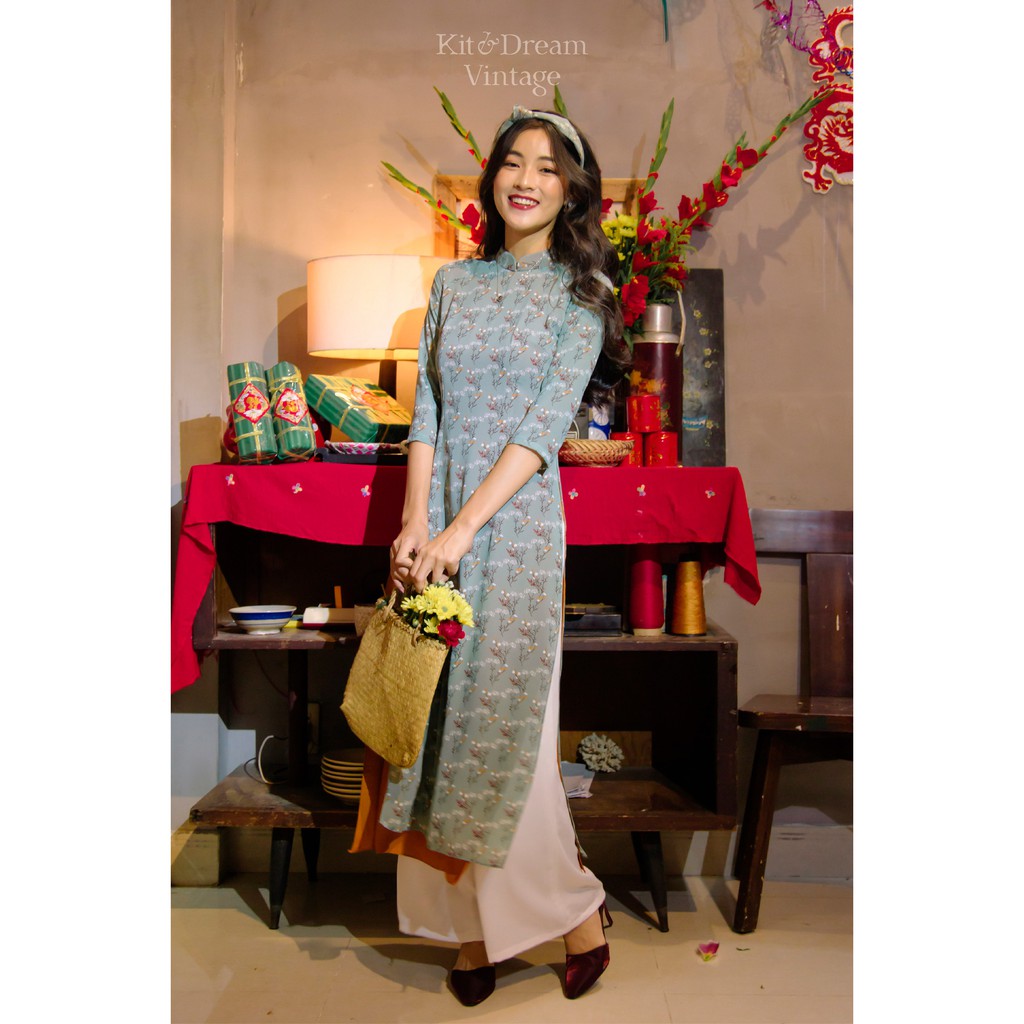 Bộ Ao Dai Truyền Thống Hoa Nhi Mau Xanh đẹp Shopee Việt Nam