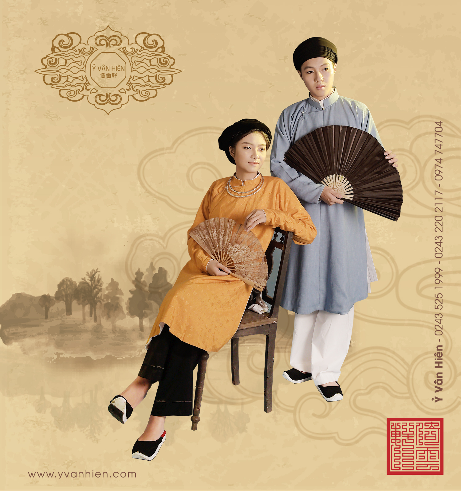 Ao Dai Gấm Thọ đồng Tiền Cho Nam Ao Dai Truyền Thống Nam Nữ
