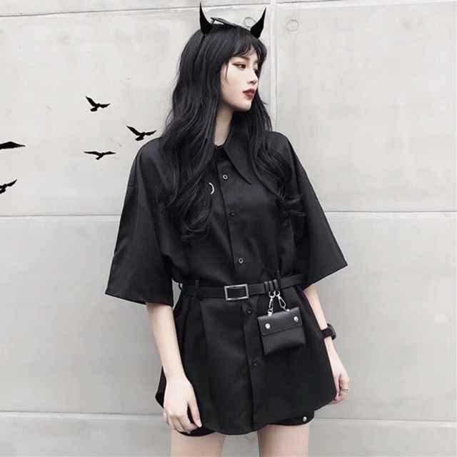 Mua Sơmi Tặng Day Nịch Bop Da Sơ Mi đen Ca Tinh Ulzzang Form Rộng Giấu Quần Sieu Chất Shopee Việt Nam