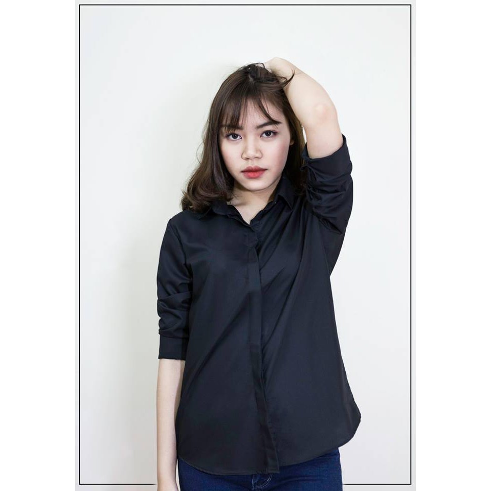 Sơ Mi đen Nữ Trơn Tay Dai Panpan Vn