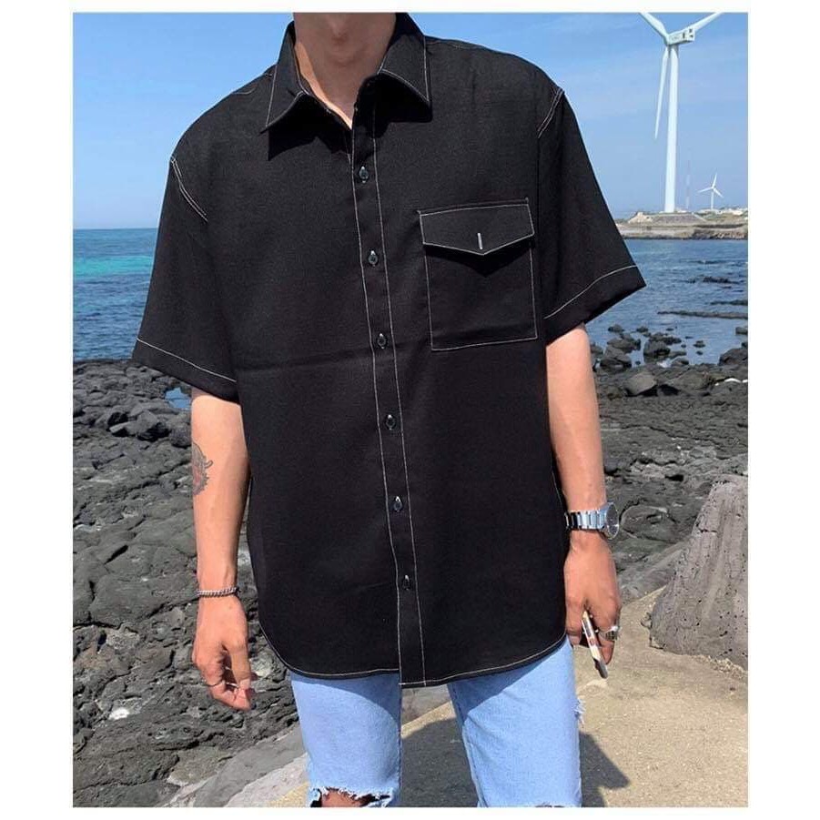 Co Sẵn Size M Ao Sơ Mi Nam Form Rộng đen Han Quốc Shopee Việt Nam