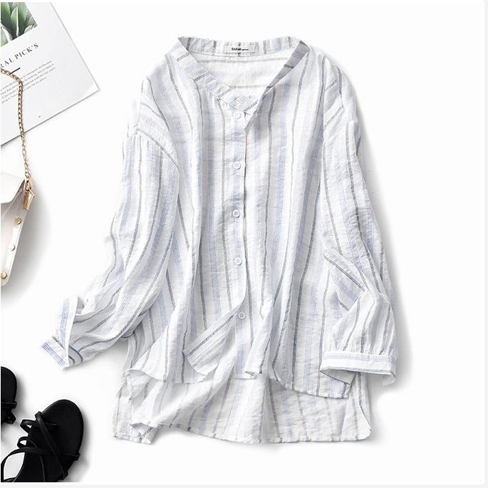 Ao Sơ Mi Nữ Kẻ Sọc Nữ Form Rộng Cổ Trụ Vintage Dai Tay Han Quốc Akira Store Shopee Việt Nam