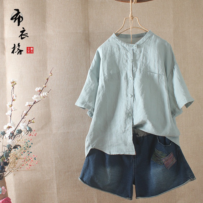 áo Sơ Mi Linen Cổ Trụ Nữ