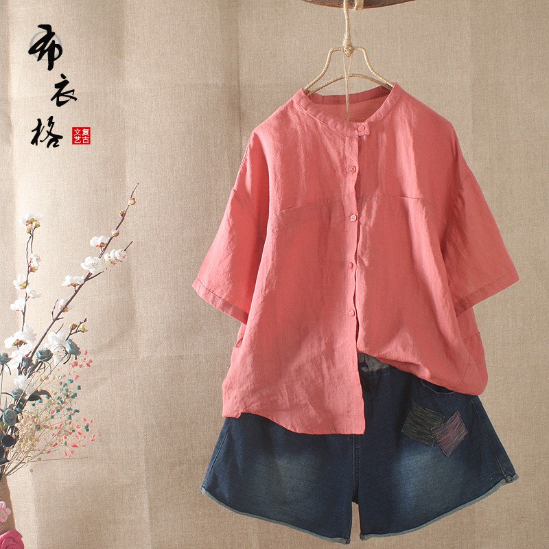 Ao Sơ Mi Nữ Tay Ngắn Cổ Trụ đơn Giản Chất Liệu Linen Dang Rộng Trẻ Trung Zanzea Lazada Vn