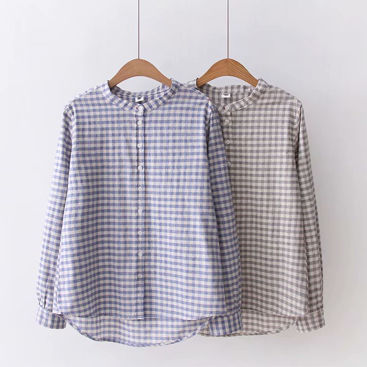 Ao Sơ Mi Nữ Akira Kẻ Caro Cổ Trụ Dai Tay Vải Linen Cao Cấp Shopee Việt Nam