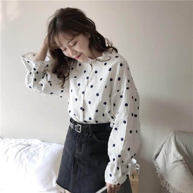 Ao Sơ Mi Ulzzang Sơ Mi Nữ đẹp Chấm Bi Ao Kiểu Dang Han Quốc Banh Beo Tay Bồng Shopee Việt Nam