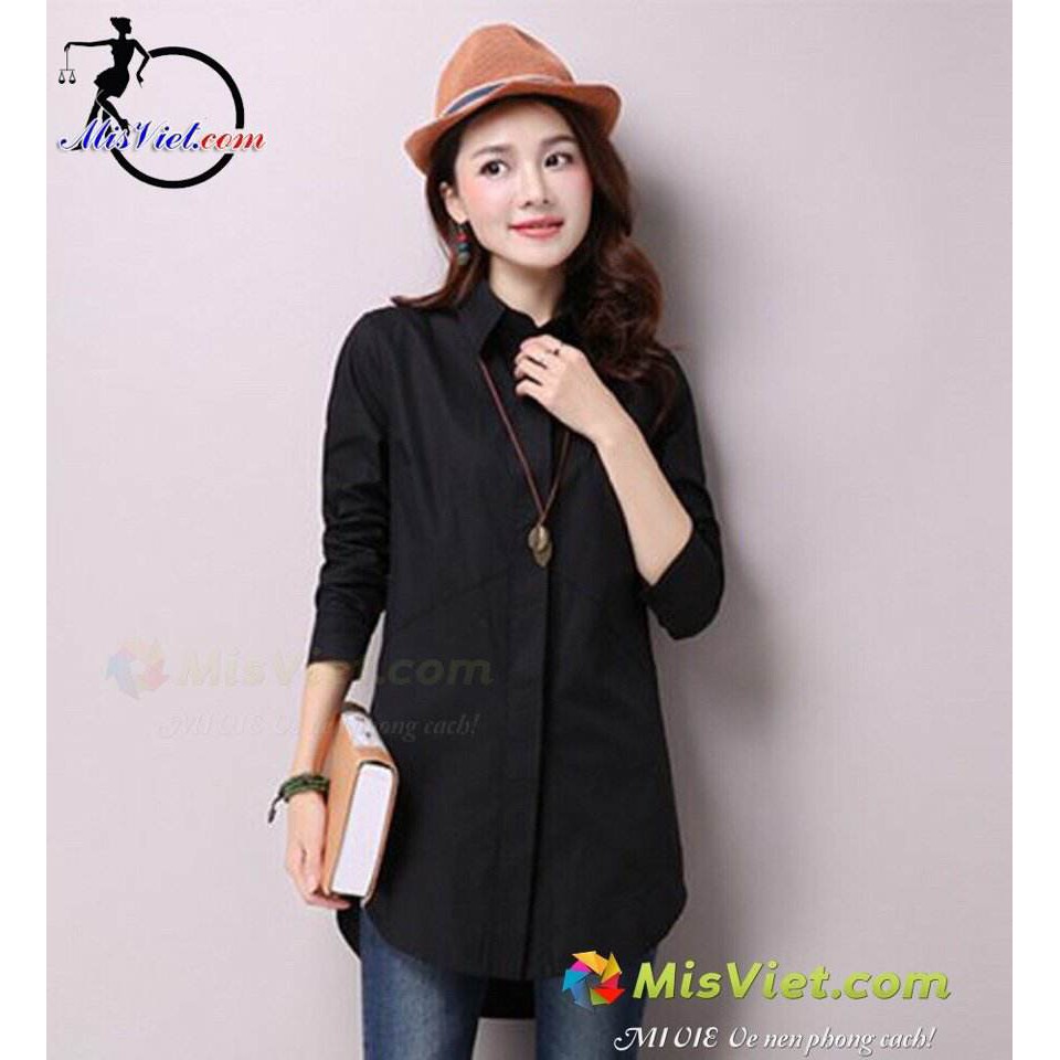 Ao Sơ Mi Nữ Dai Form Rộng Phong Cach đen Giảm 75