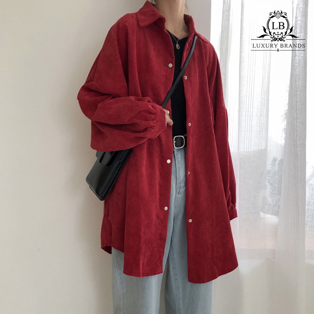 Ao Sơ Mi Nữ Vải Chất Nhung Tăm Dai Tay Vintage Retro Kiểu Dang Dai Form Rộng Oversize Thu đong Ulzzang Han Quốc 2019 Giảm Chỉ Con 318 000 đ
