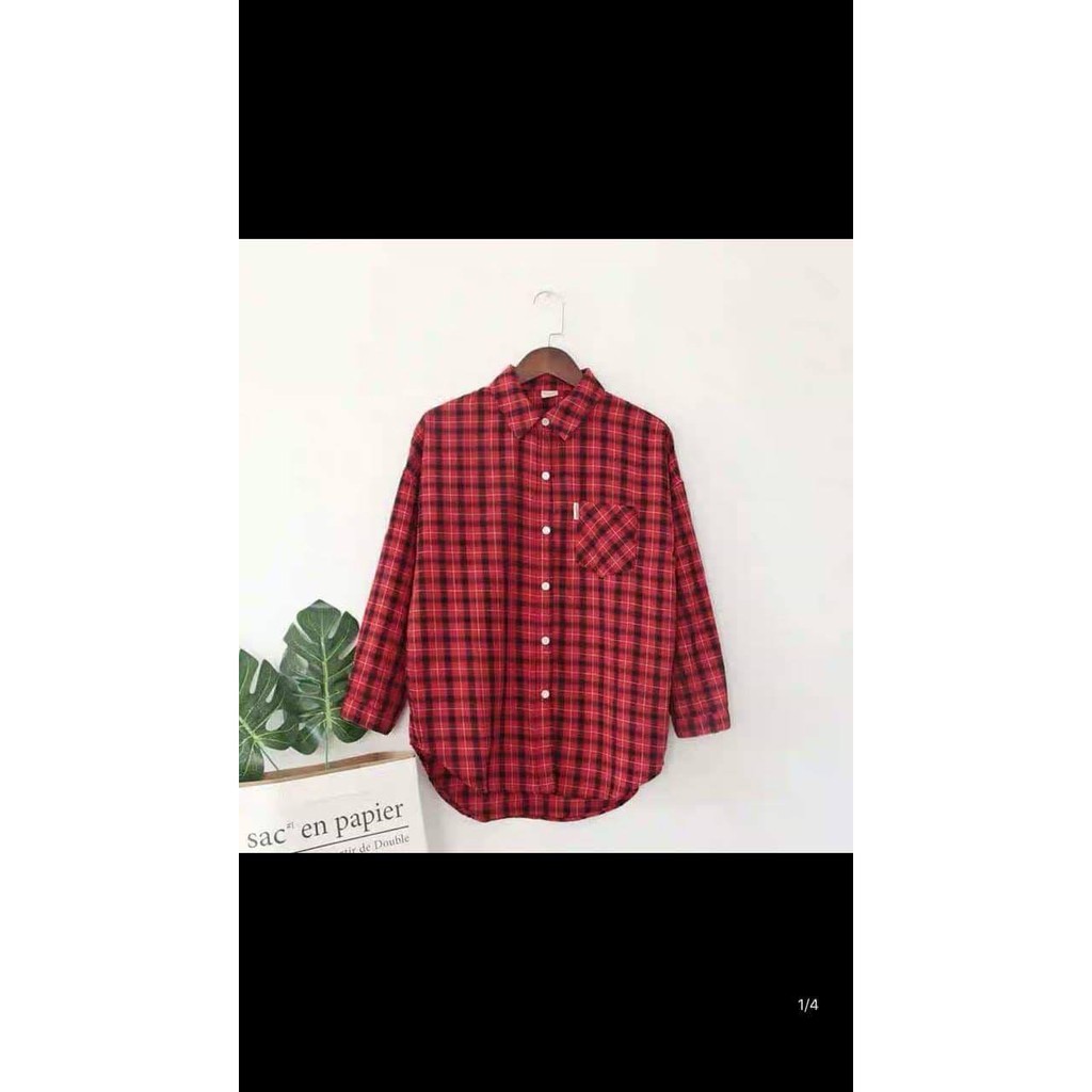 Ban Ao Sơ Mi Nữ Sọc Caro Form Rộng Tay Lỡ Dễ Thương Sọc đỏ Online Gia Tốt 213558