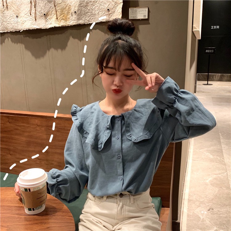 Ao Sơ Mi Ruffle Dai Tay Nữ Phong Cach Han Quốc Hot Trend 2020 Shopee Việt Nam