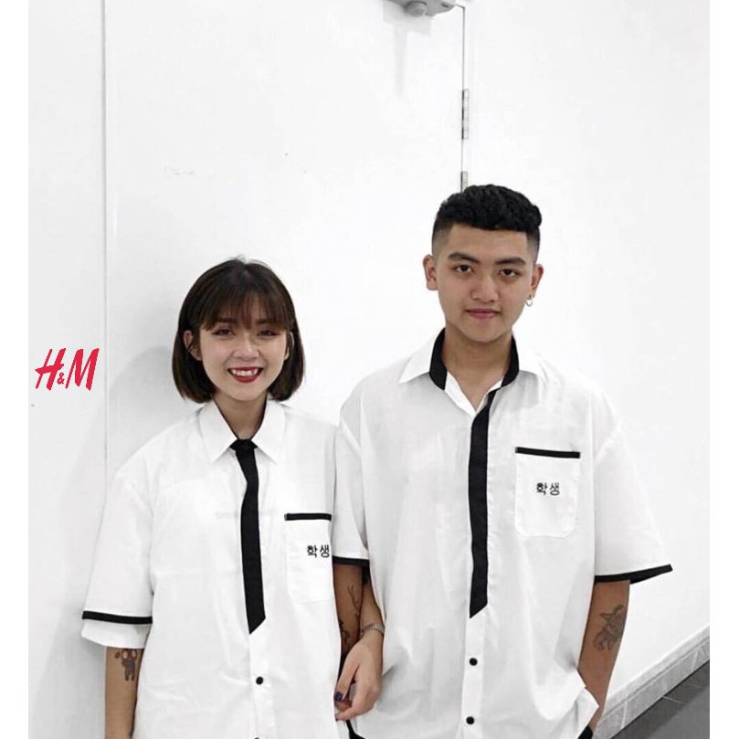Ao Sơ Mi Han Viền đen Unisex Co 2size M L Shopee Việt Nam