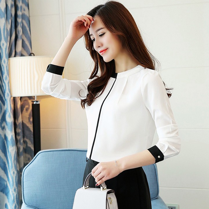 Ao Sơ Mi Cong Sở Nữ Mau Trắng Viền đen Kiểu Han Quốc Shopee Việt Nam