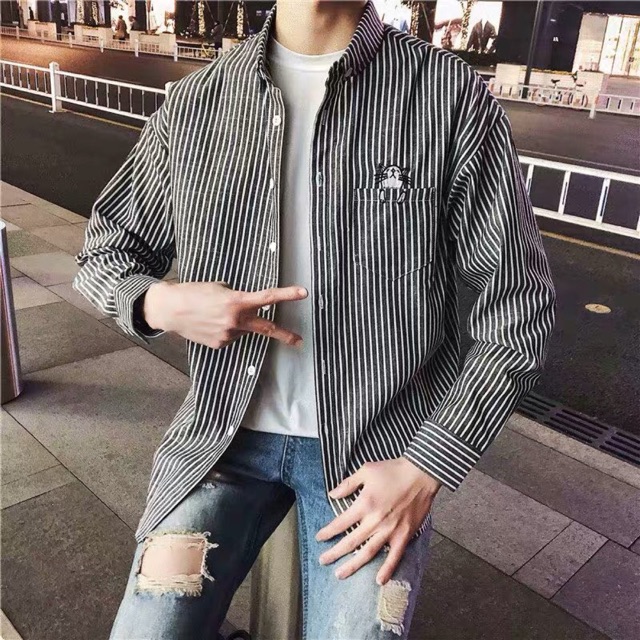 Ao Sơ Mi Sọc Nam Form Rộng Phong Cach Han Quốc Smj2