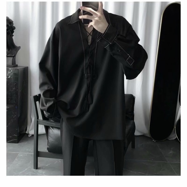Ao Sơ Mi đen Dai Tay Cổ Vest Form Rộng Vải Lụa Thoang Mat Unisex Ao Sơ Mi Nam Nữ đẹp Han Quốc Sw017 Lazada Vn