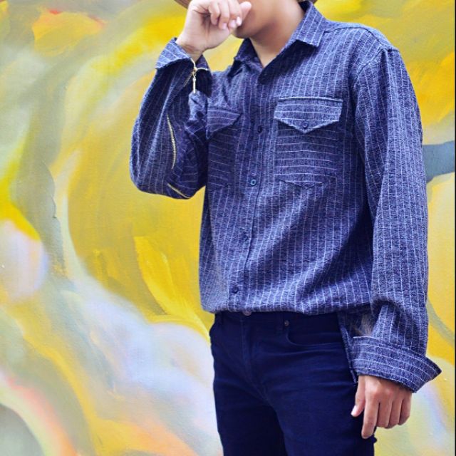 Ao Sơ Mi Nam Tay Dai Han Quốc Sạc Vằn Trum Unisex Tiki Vn
