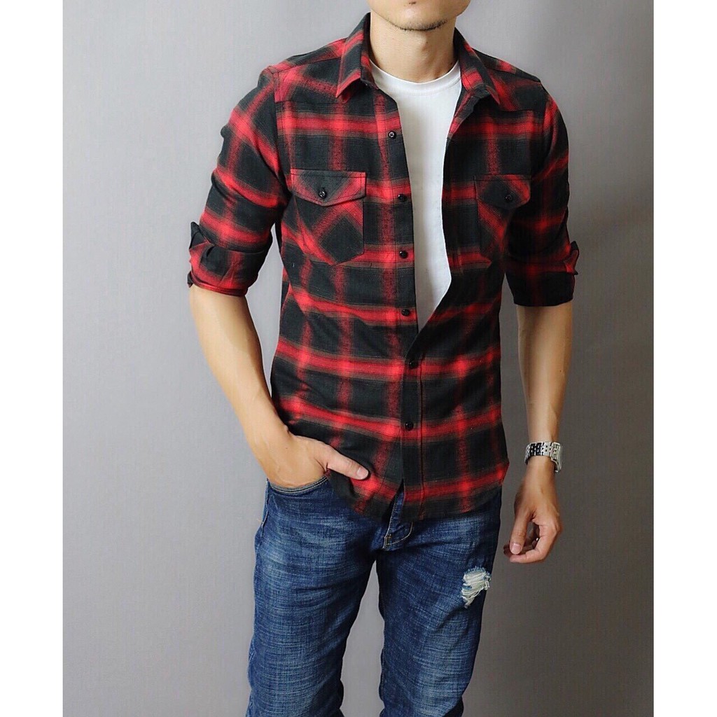 Ao Sơ Mi Flannel Caro đỏ Ao Sơ Mi Nam Sơ Mi Nam Sọc Caro 290