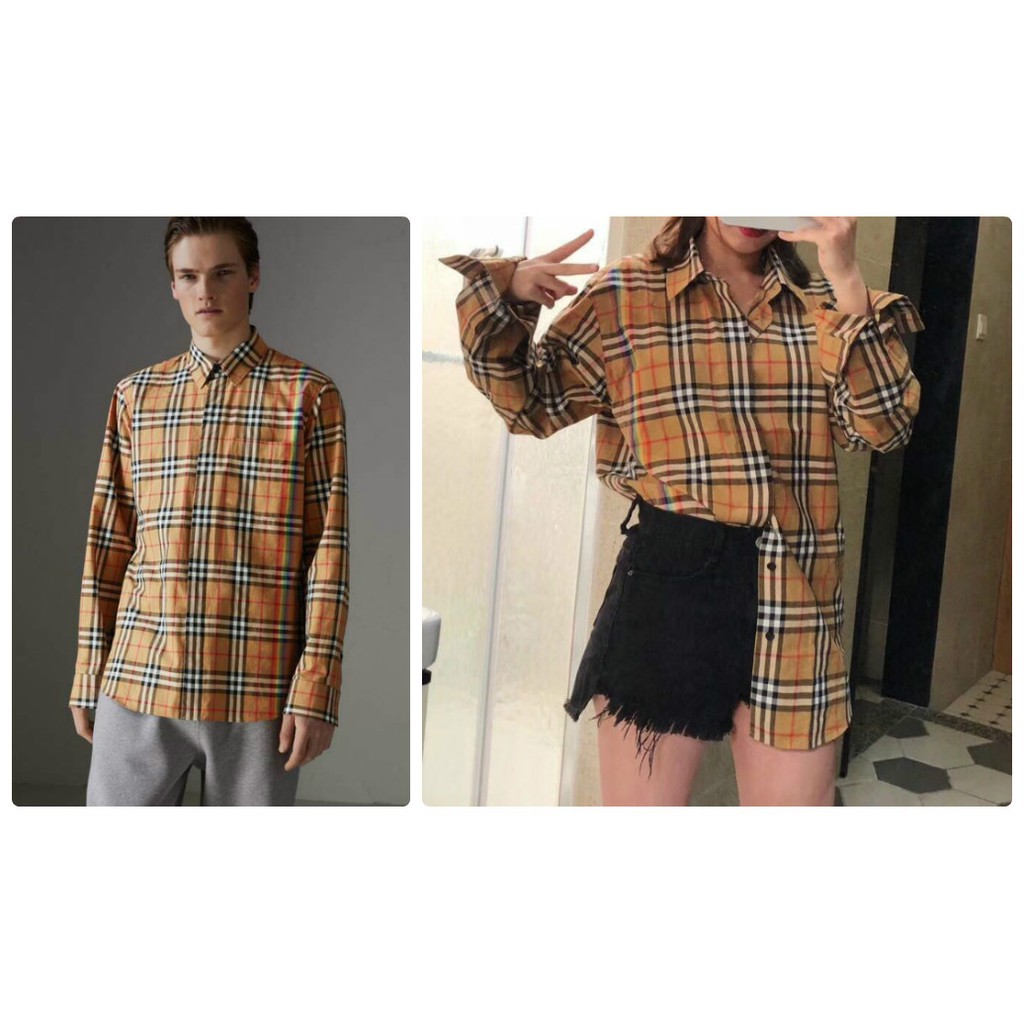 Ao Sơ Mi Unisex Burberry Vintage Họa Tiết Cầu Vồng Xuất Dư Xịn Shopee Việt Nam