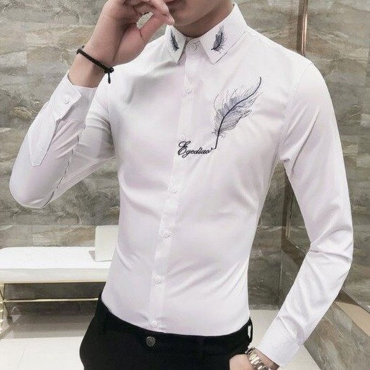 Sơ Mi Nam Họa Tiết Theu Ao Sơ Mi Trắng Nam Han Quốc Kate Lụa Khong Nhăn Shopee Việt Nam