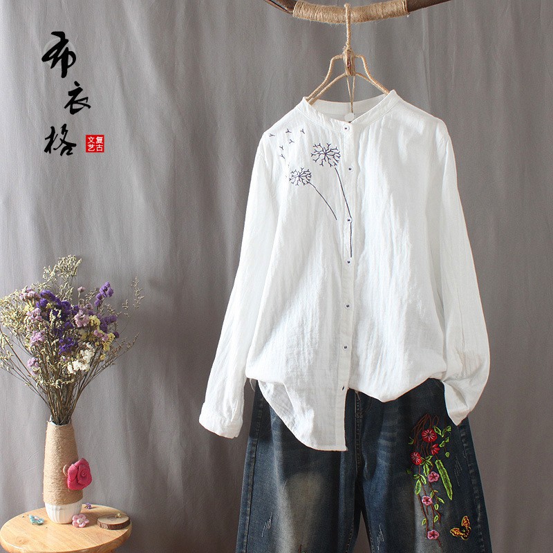 Ao Sơ Mi Trắng Nữ Cổ Trụ Vải Linen Theu Tinh Tế Thời Trang Phong Cach Nhật Bản Shopee Việt Nam