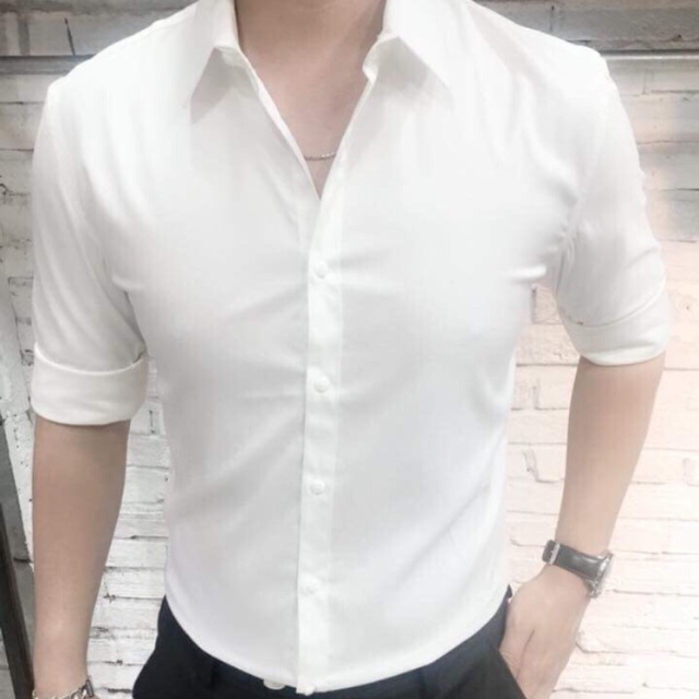 Ao Sơ Mi Lụa Nam Cao Cấp Trắng Trơn Han Quốc Shopee Việt Nam