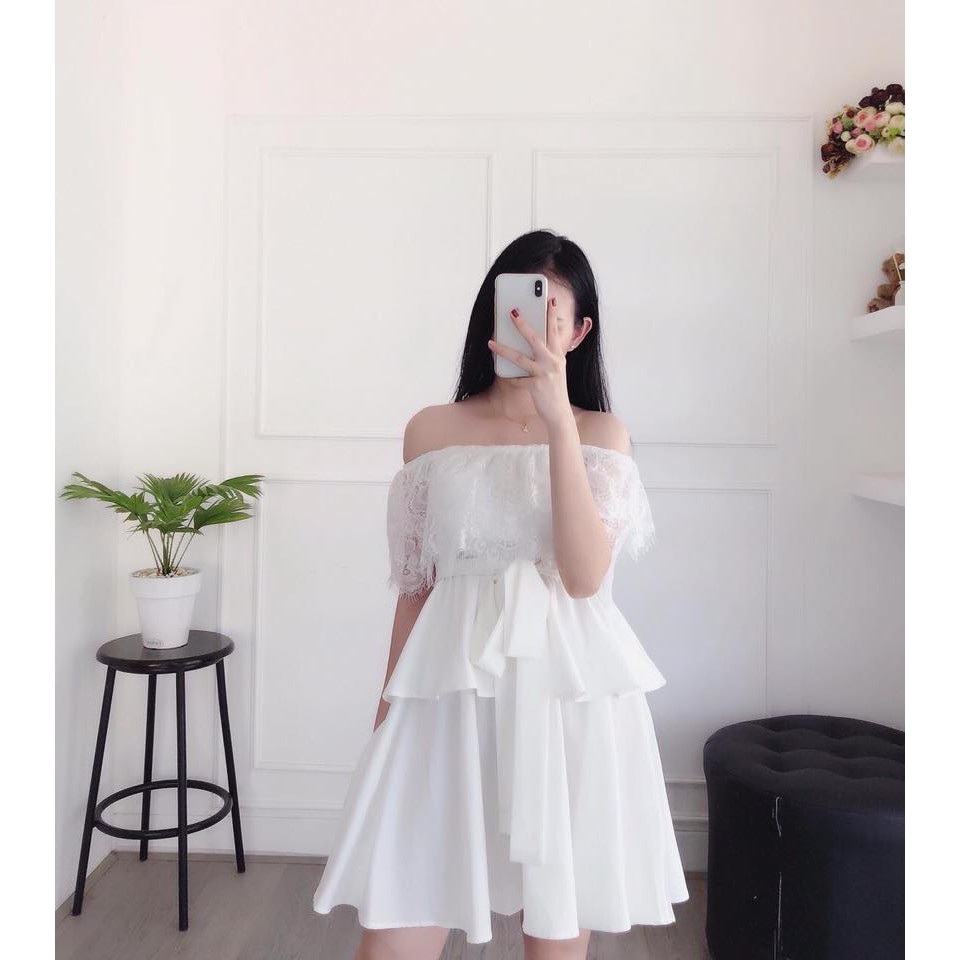 đầm Dự Tiệc đam Cưới Trễ Vai Phối Ren Beo Tầng Sieu Sang Chảnh Shopee Việt Nam