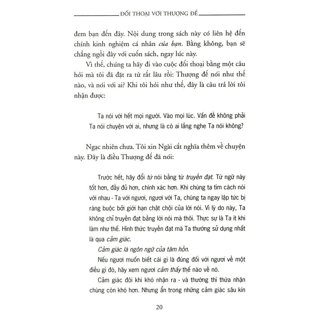 đối thoại với thượng đế. Có lẽ bạn nghĩ hoặc đã được dạy bảo rằng điều đó không thể nào có được. Từ góc nhìn của tôi cuốn đối thoại với thượng đế của neal donald walsch cũng đã rơi vào trường hợp như vậy. Bạn sắp có một cuộc đối thoại với thượng đế đúng vậy.