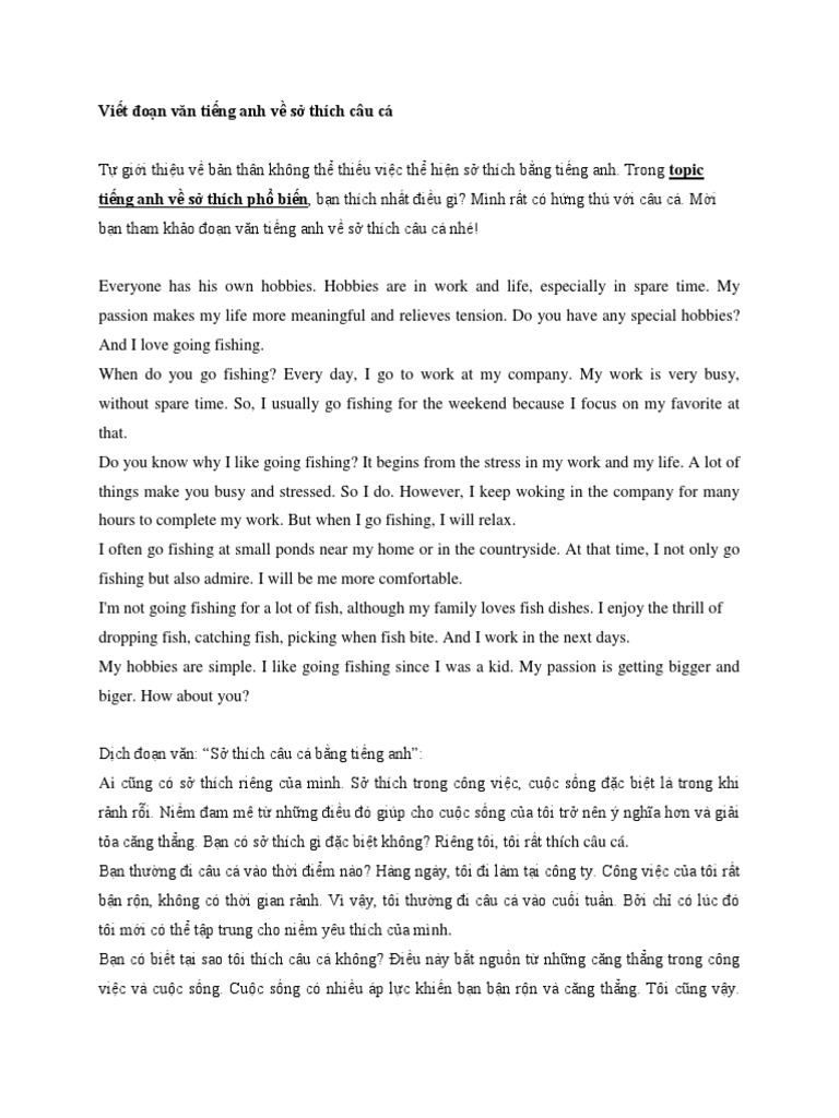 Viết đoạn Văn Tiếng Anh Về Sở Thich Cau Ca