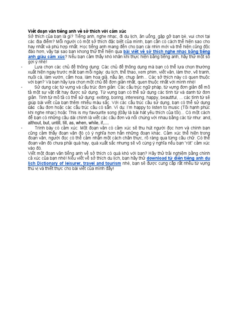 Viết Một đoạn Văn Về Sở Thich Bằng Tiếng Anh Tai Liệu