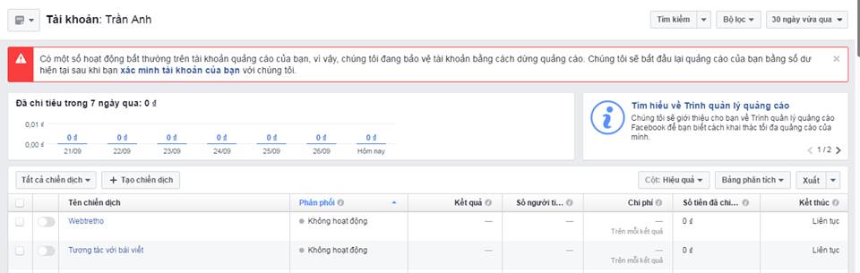 Tai Khoản Quảng Cao Facebook Bị Vo Hiệu Hoa Vi 60 Ngay Kể Từ Ngay Tạo Tai Khoản Quảng Cao Khong Phat Sinh Chiến Dịch Chi Tieu Nao Chạy Quảng Cao