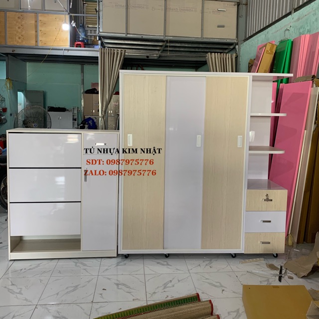 Tủ Nhựa đai Loan Phối Mau Trắng Sồi Cửa Lua Freeship Tphcm Shopee Việt Nam