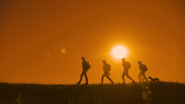 People Hikers Silhouette Of Sunlight Group And The Dog Of Tourists Four People Walking On Top
